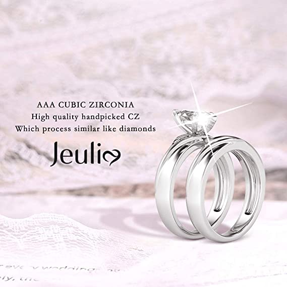 JEULIA Wedding Rings Engagement Rings for Women Anniversary Promise Ring Bridal Sets 925 Sterling Silver with 1.6 ct Primary Stone+ 0.32 ct Side Stone