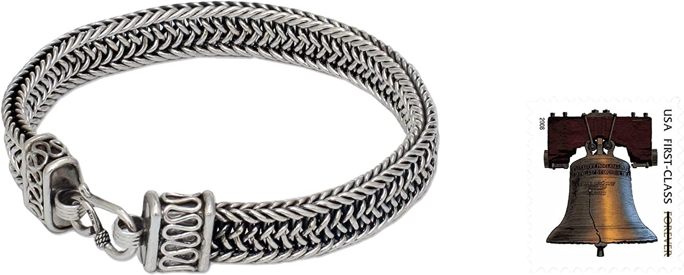 NOVICA .925 Sterling Silver Men's Woven Chain Bracelet, 8.5", Kingdom'