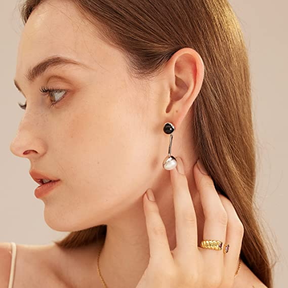 • AGATE STUD EARRINGS: This drop earrings crafted with a dainty feel and embellished with black agate for a glossy finish.