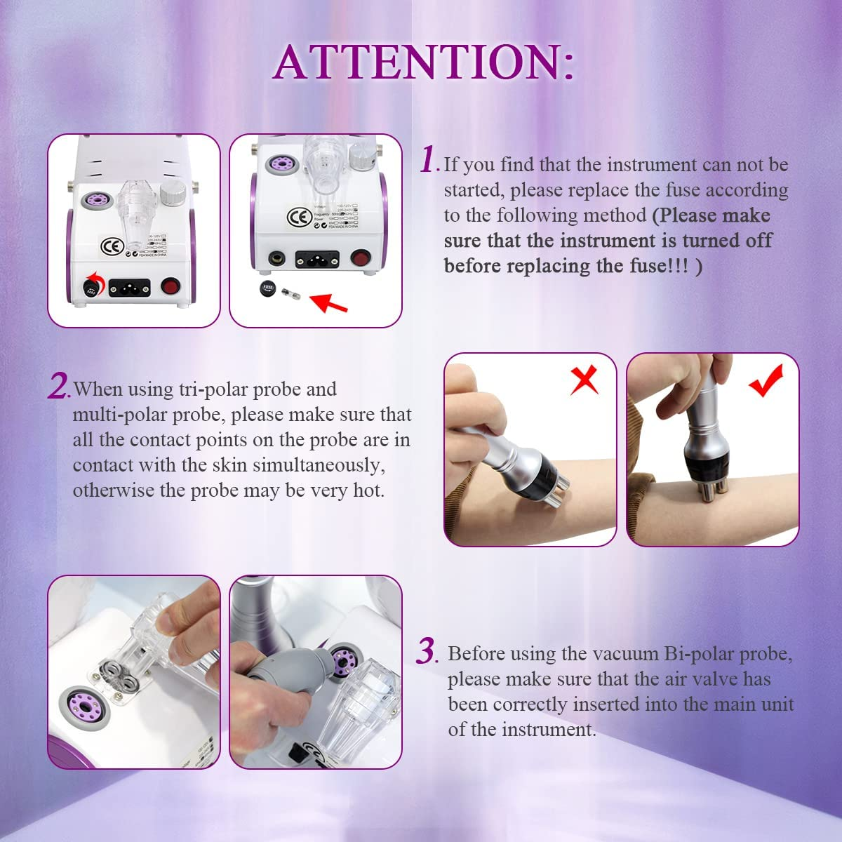 • ? SIMPLE TO USE ? — The power of the instrument can be adjusted, the time can be set, and it can be used step by step to achieve satisfactory results, give you charming body and skin care.