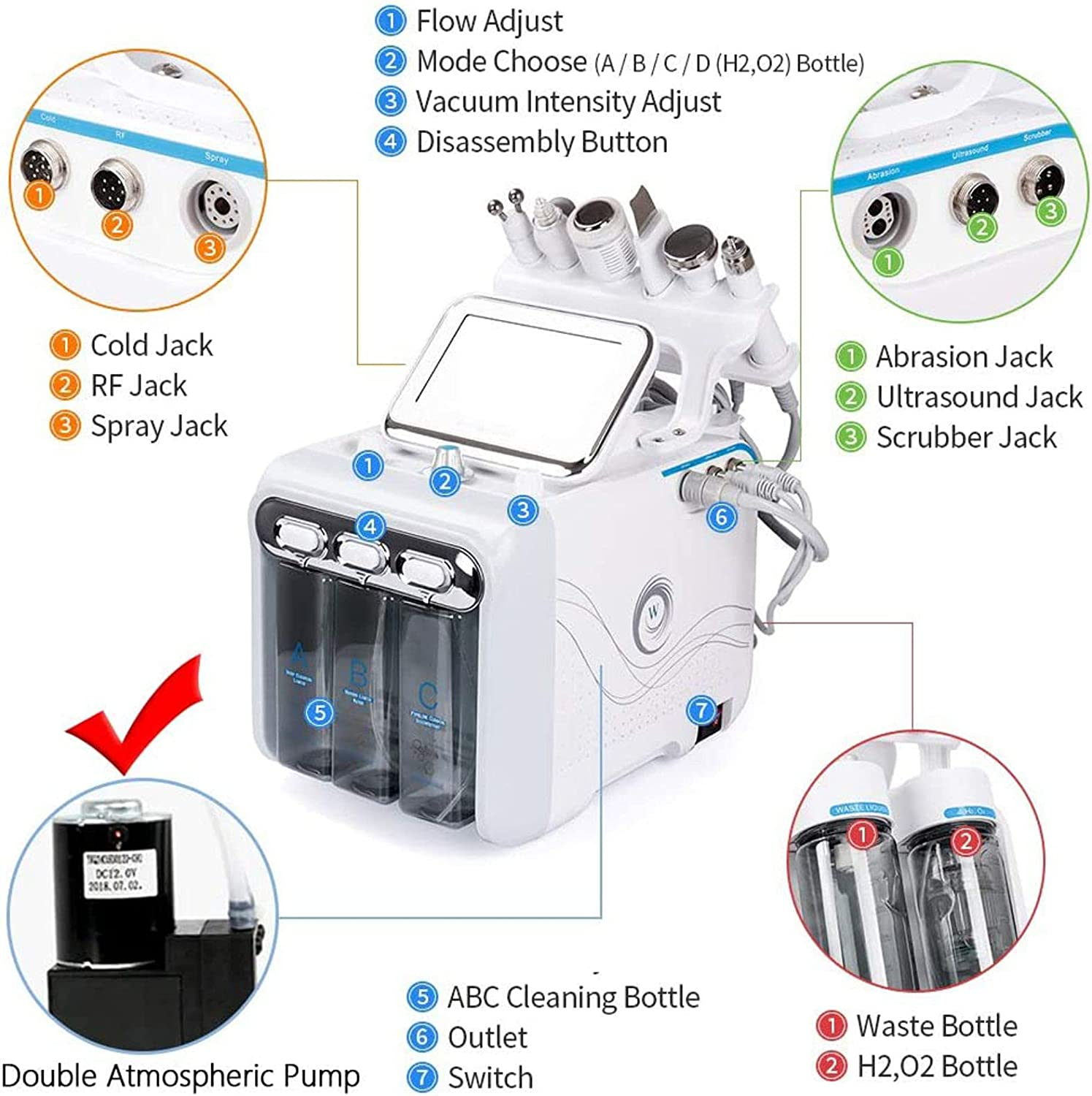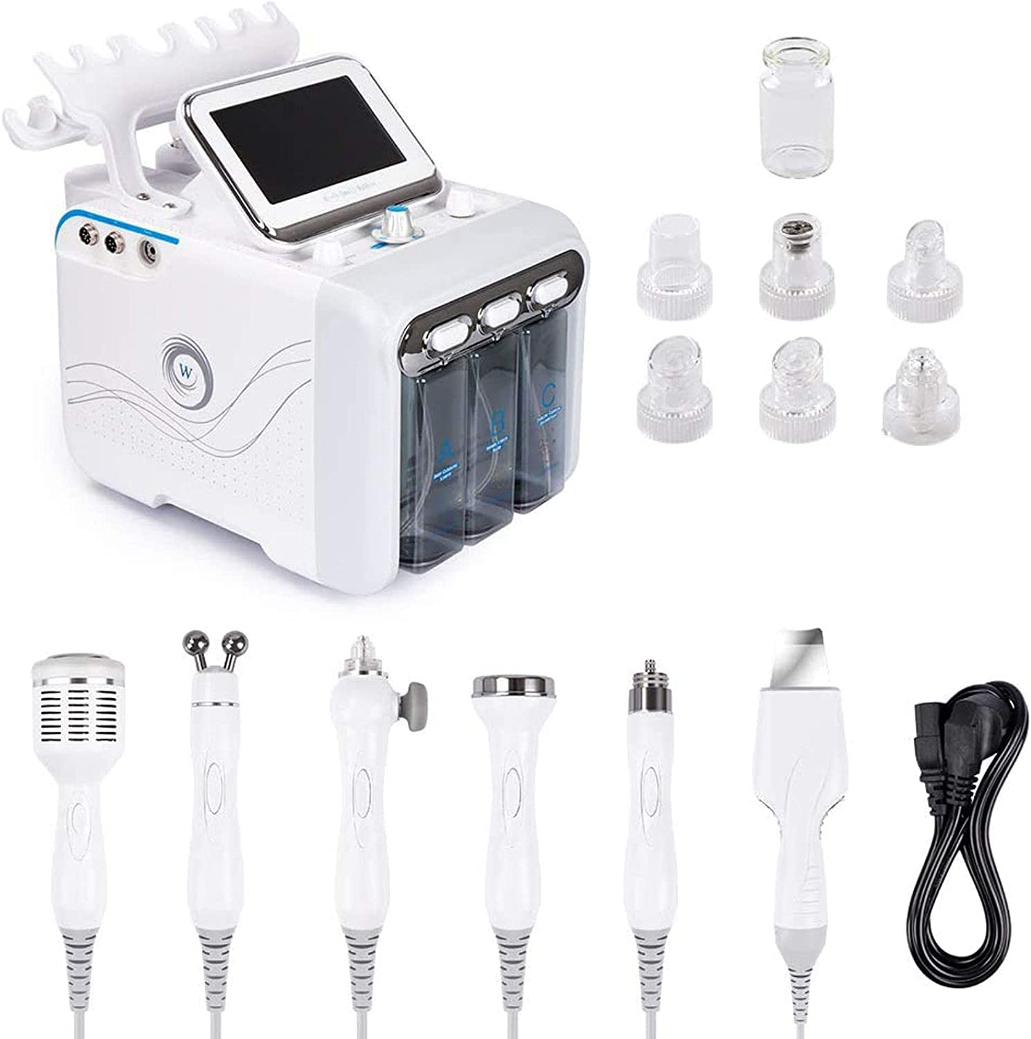 MIJOGO Hydrogen Oxygen Beauty Machine, 6 in 1 Vacuum Face Cleaning Hydro Water Oxygen Jet Peel Machine Professional Facial Sprayer Small Bubble Device, Beauty Salon Essential