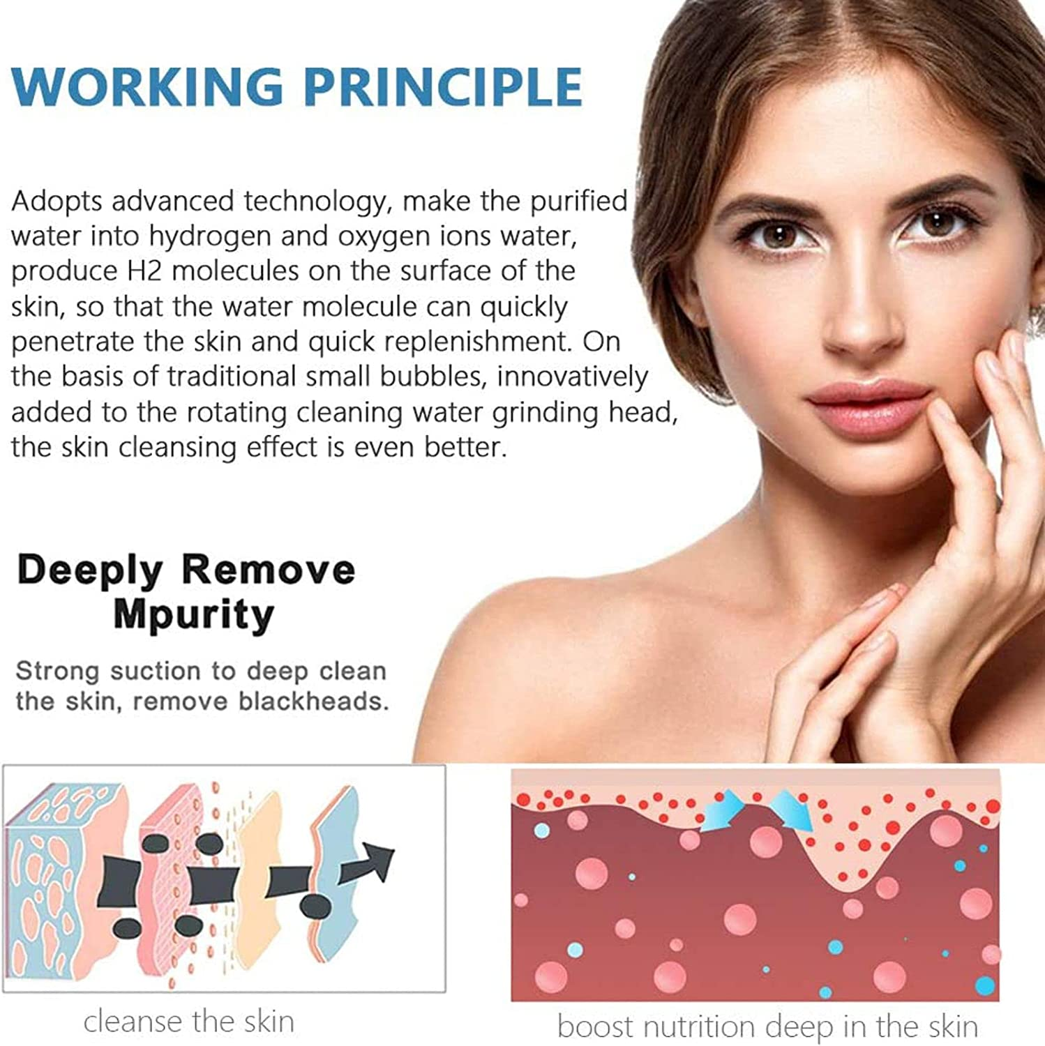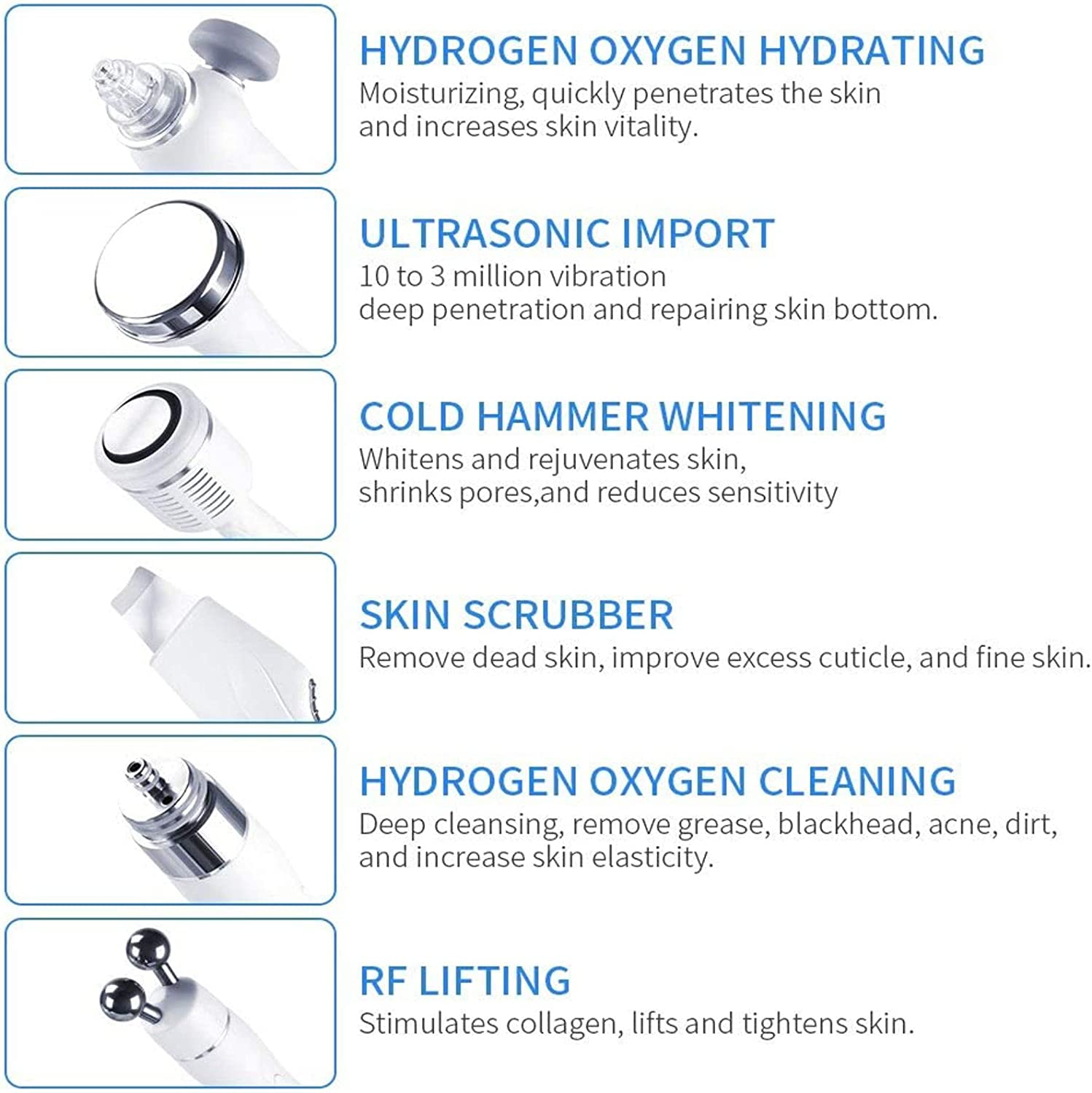 • IMPROVE SKIN COLOR:Remove skin cutin, imperfections, blemishes, wrinkles and unwanted pigmentation on the skin, Cool massage head helps to shrink pores,brighten skin color.