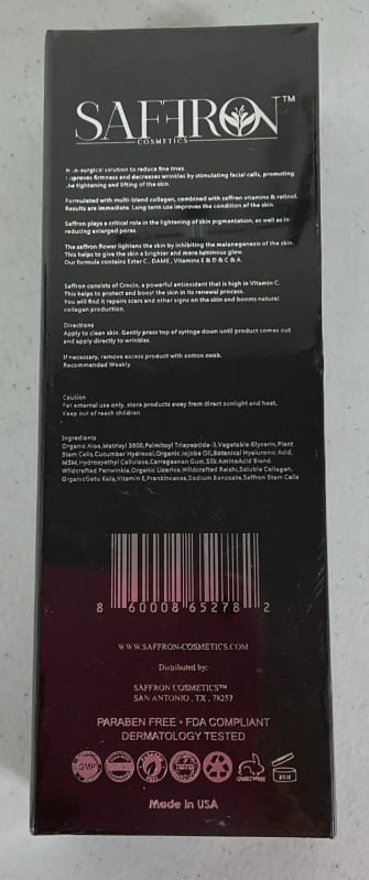 Saffron Cosmetics Skin Tightening Wrinkle Cream